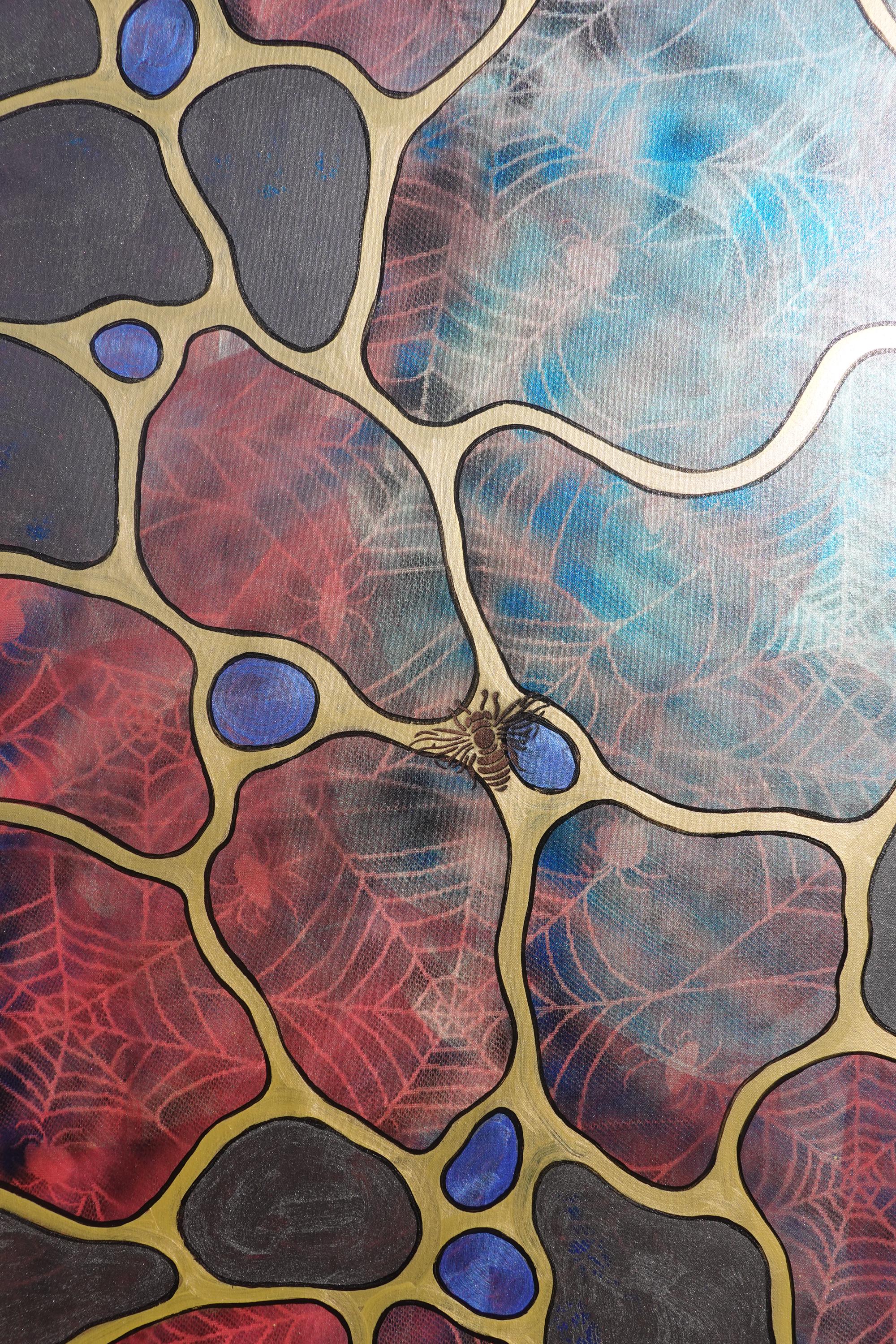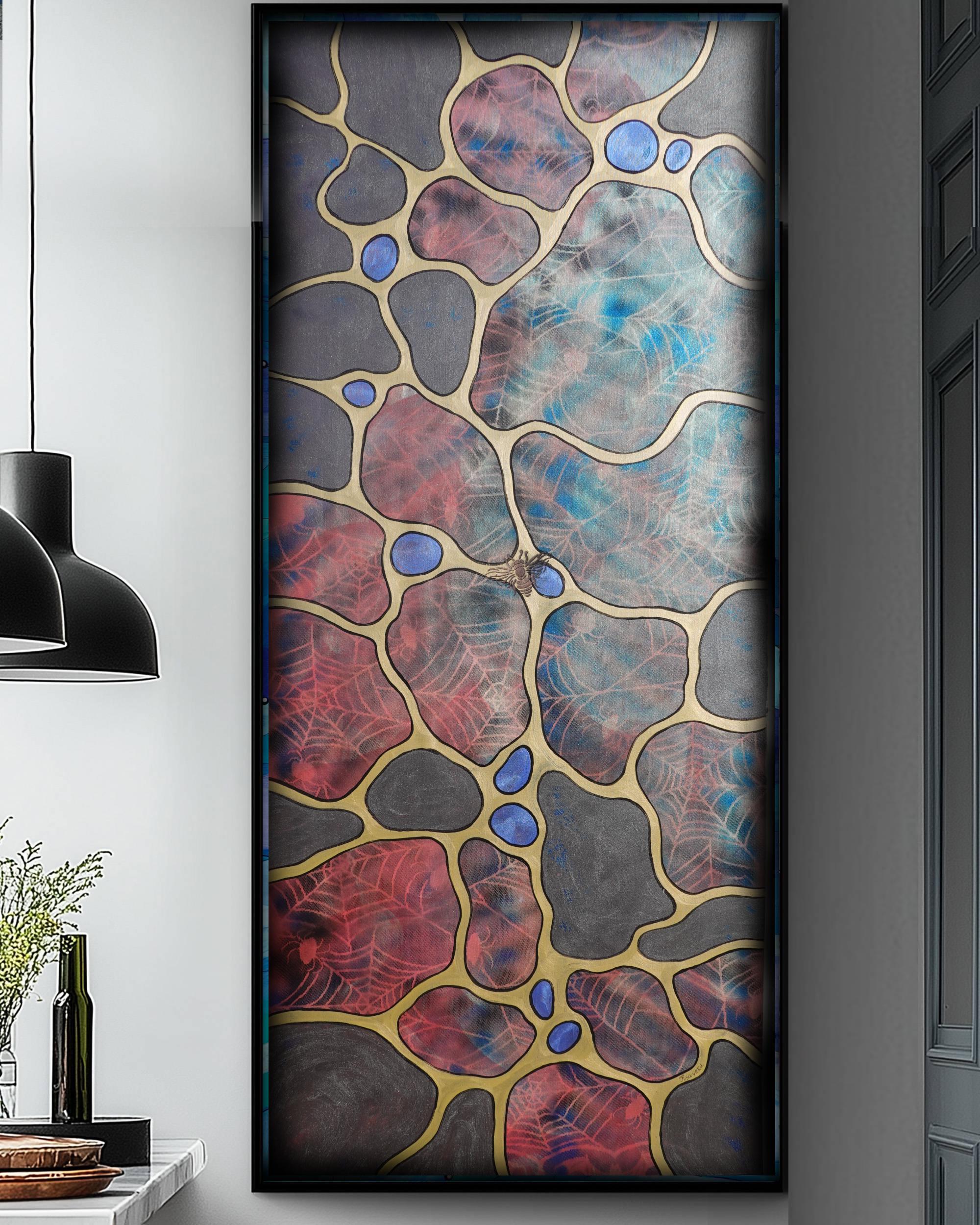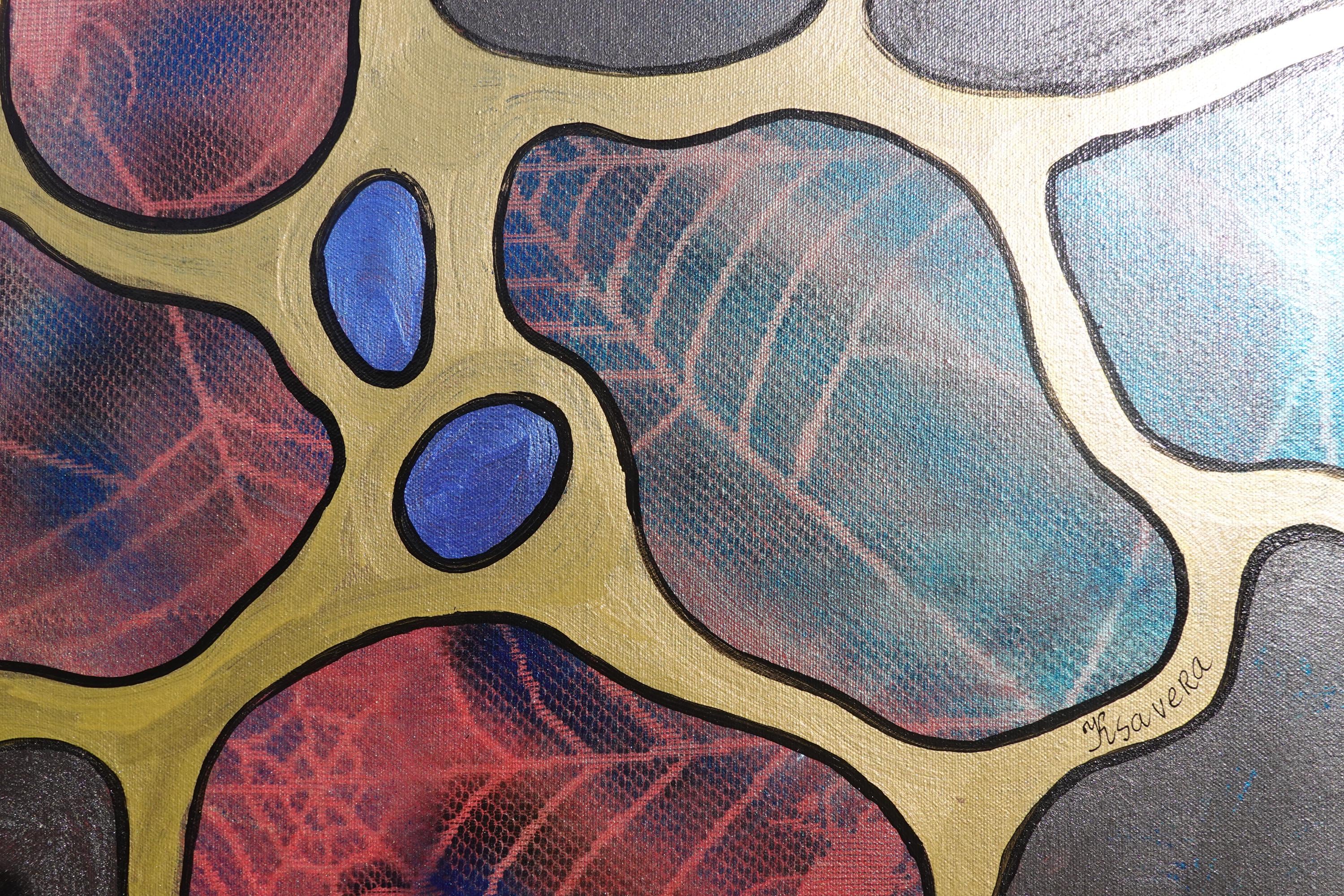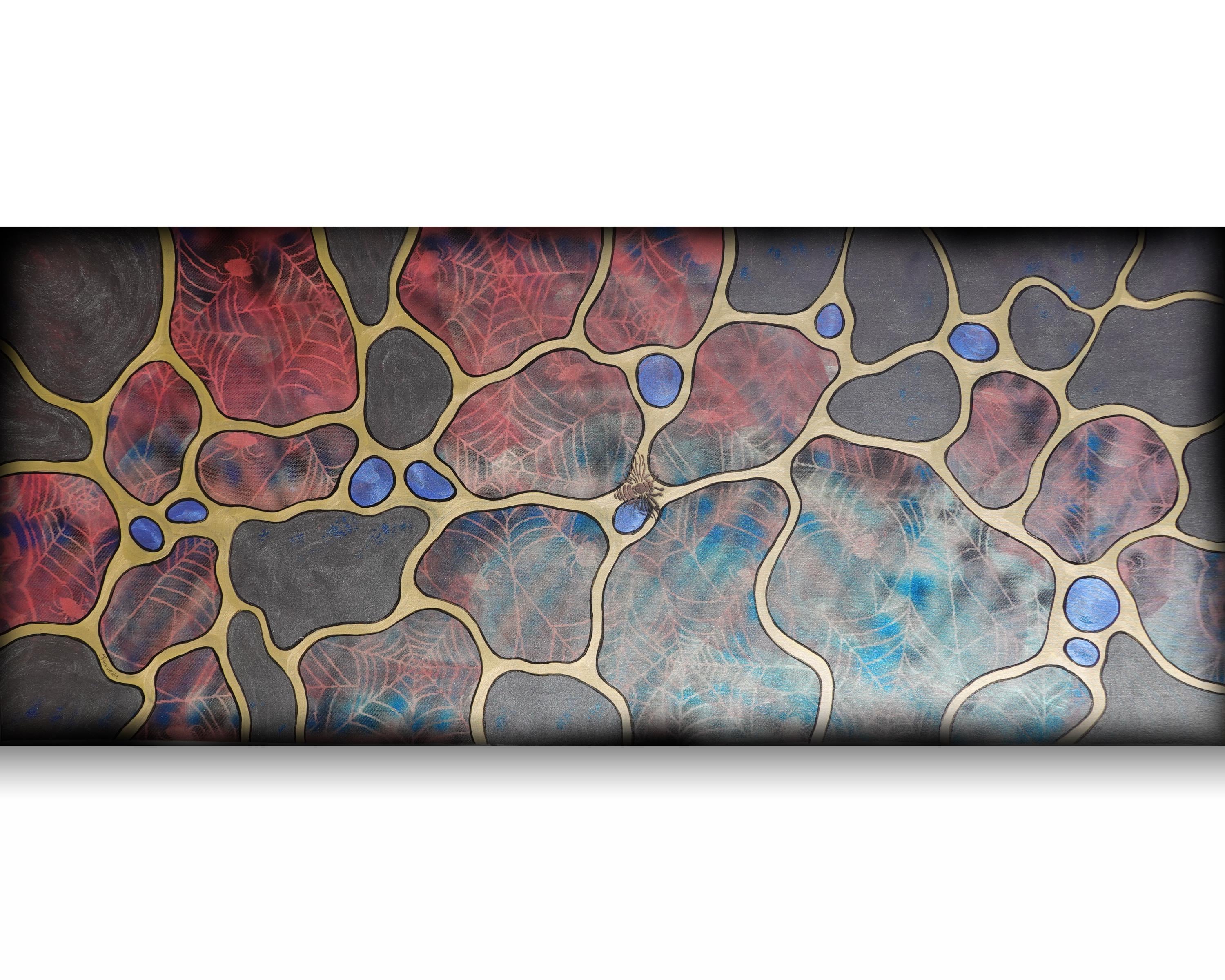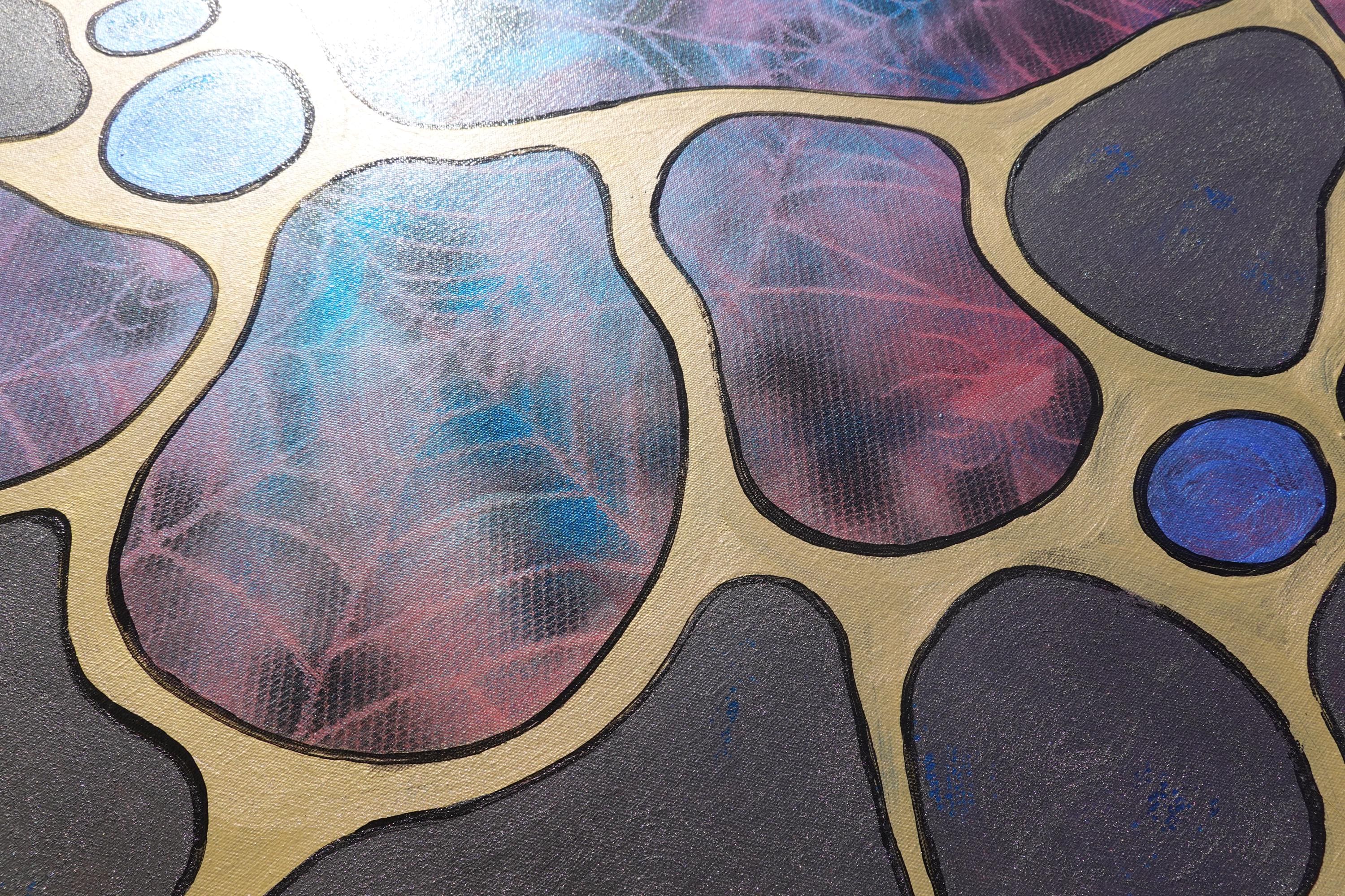 Pearl Abstract A1427 - original painting on XXXL canvas by artist Ksavera - large abstract painting on unstretched canvas 85x210cm. 3D Pearlescent effect that changes from red to blue with the light.