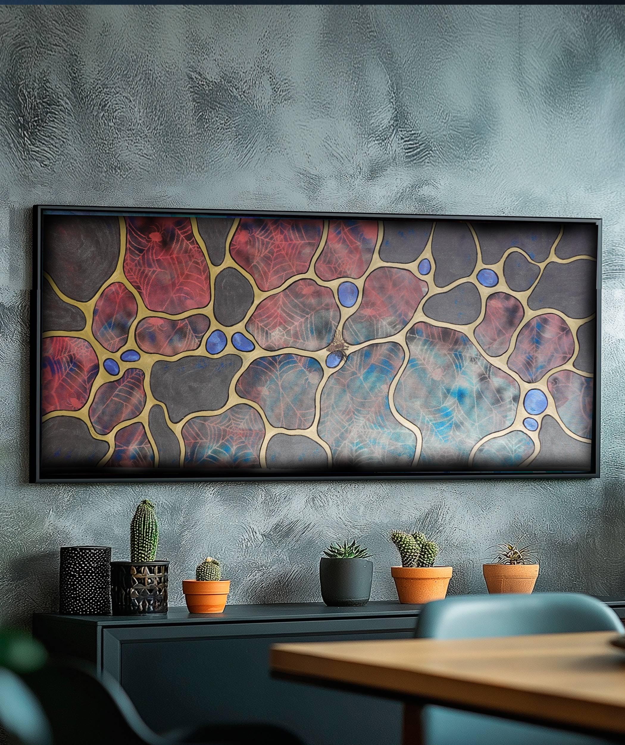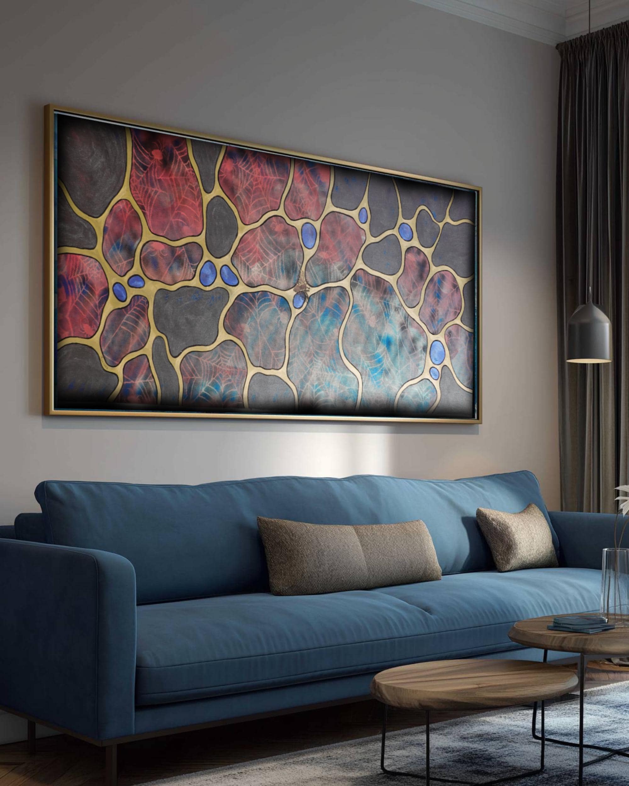 An eye-catcher on large walls, in an office, in a lounge, above bed or sofa.