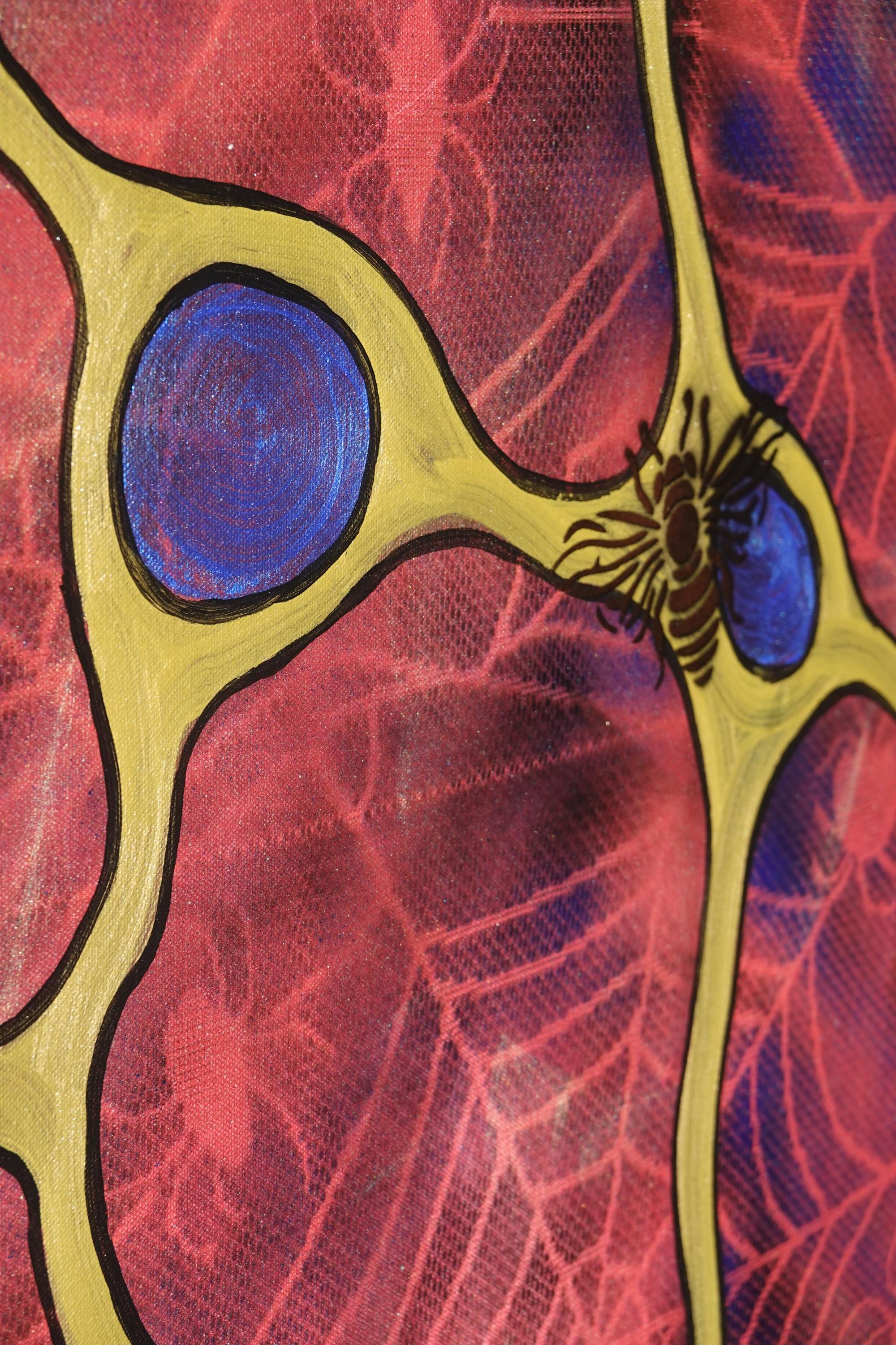 Acrylic paint and spray.