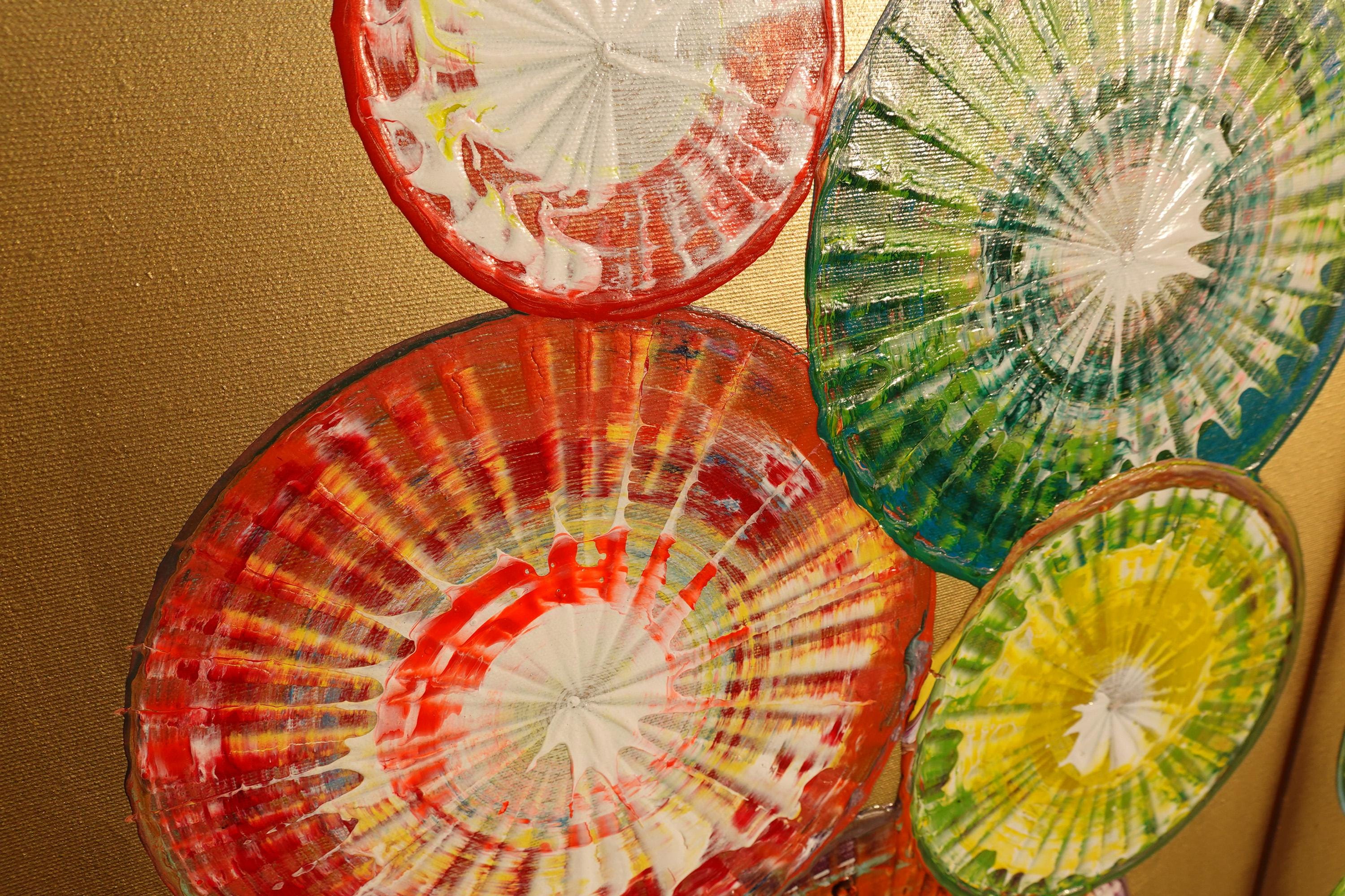 Several layers of silver and teal paint and a glossy finish conserve the beauty of the transient on canvas.