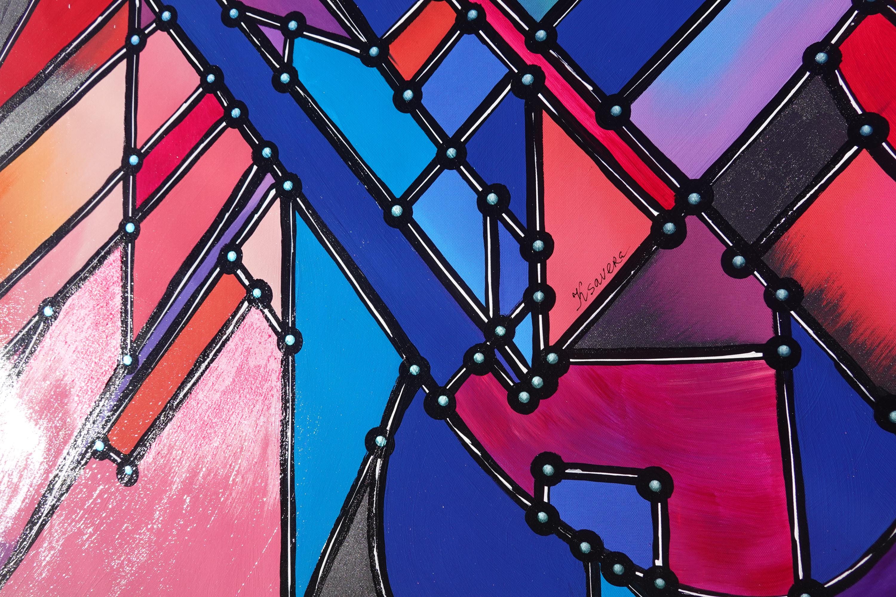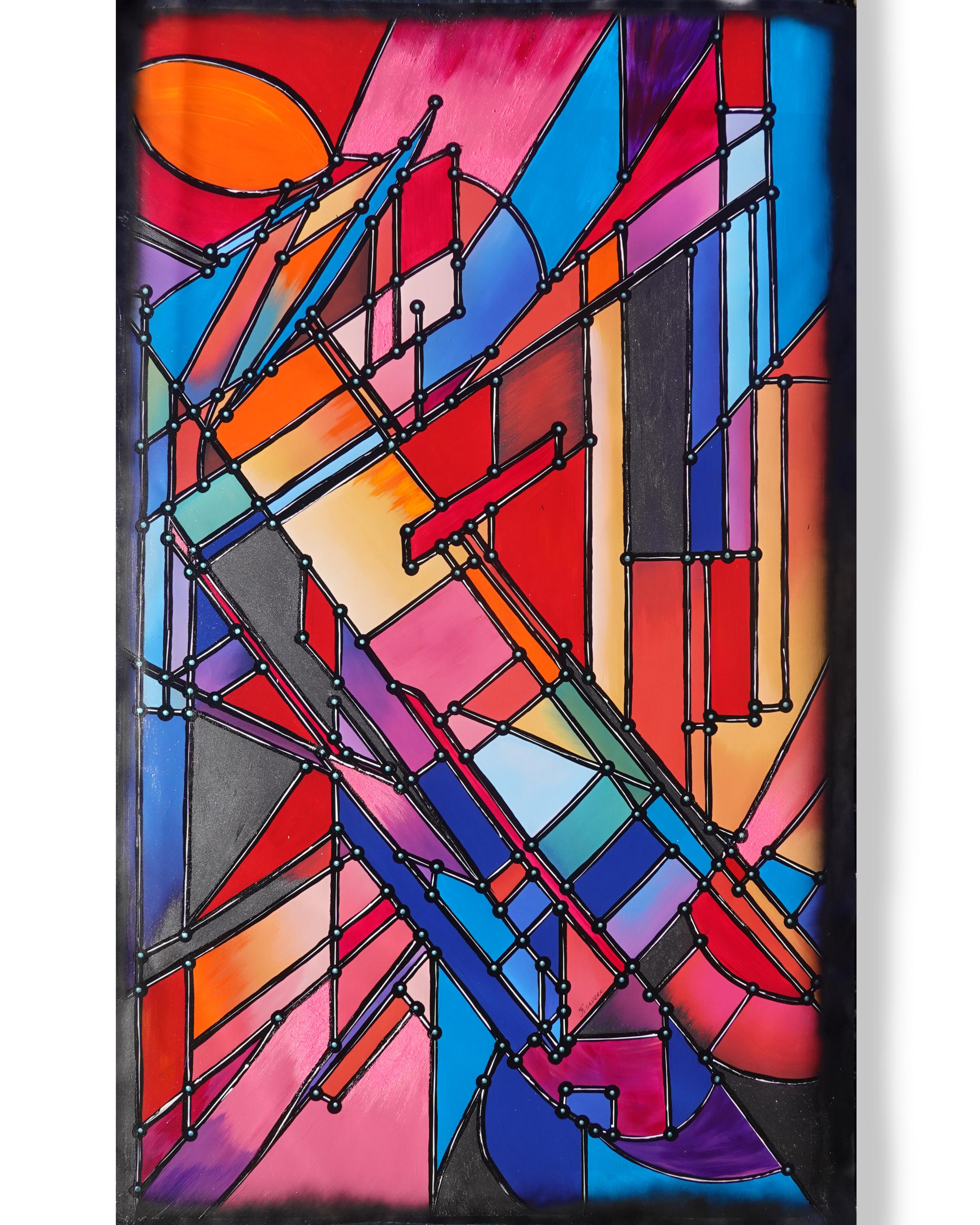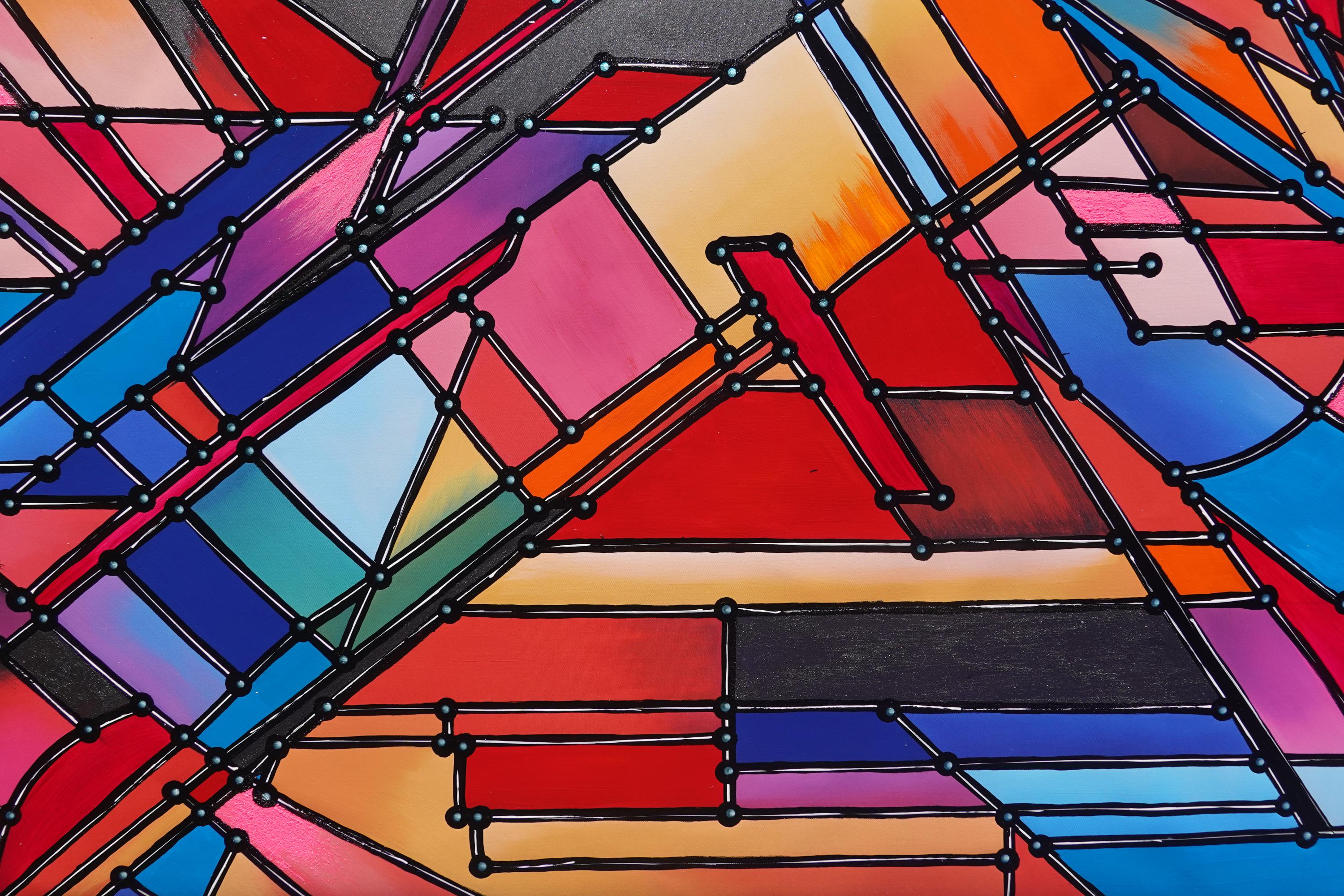 Cubism A1425 - painting on XXL canvas by artist Ksavera - large abstract painting on unstretched canvas 107x174cm