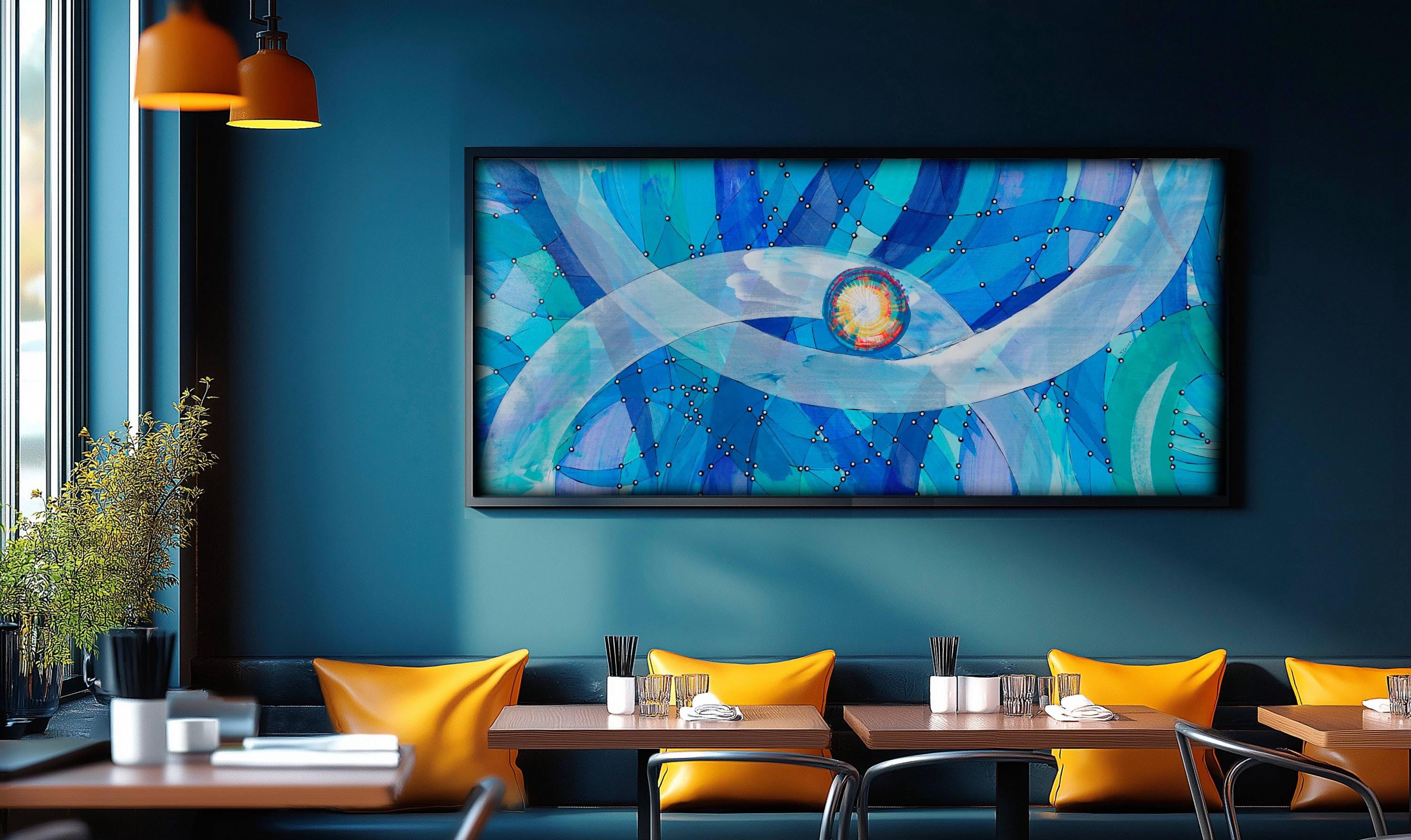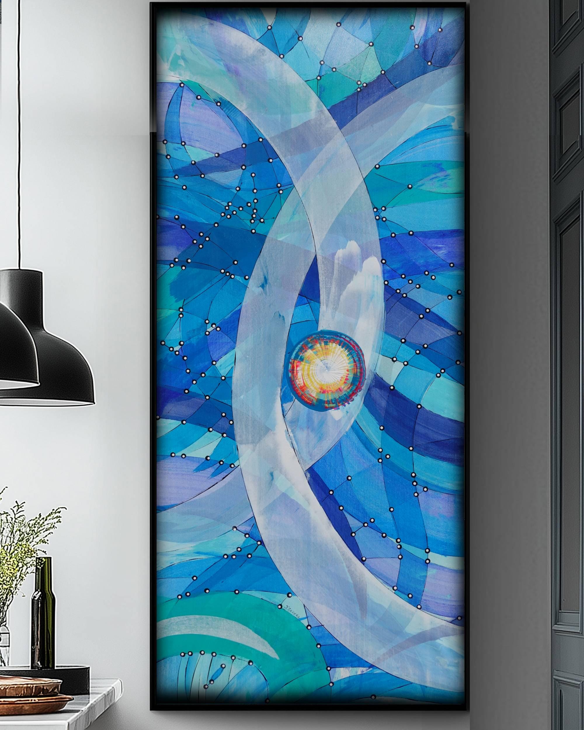 A bold abstract painting. Perfect for adding energy and color to your living room, office, or creative space.