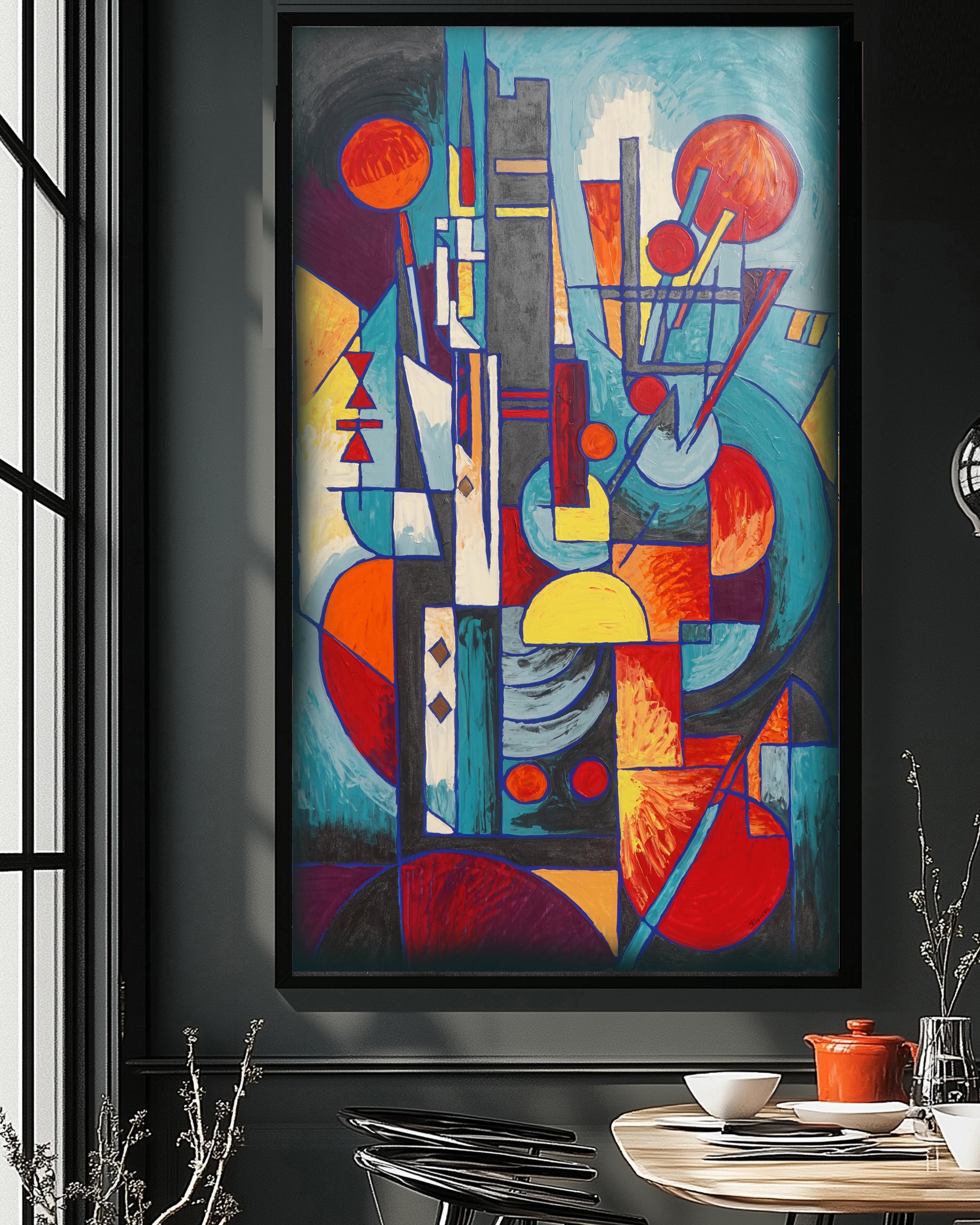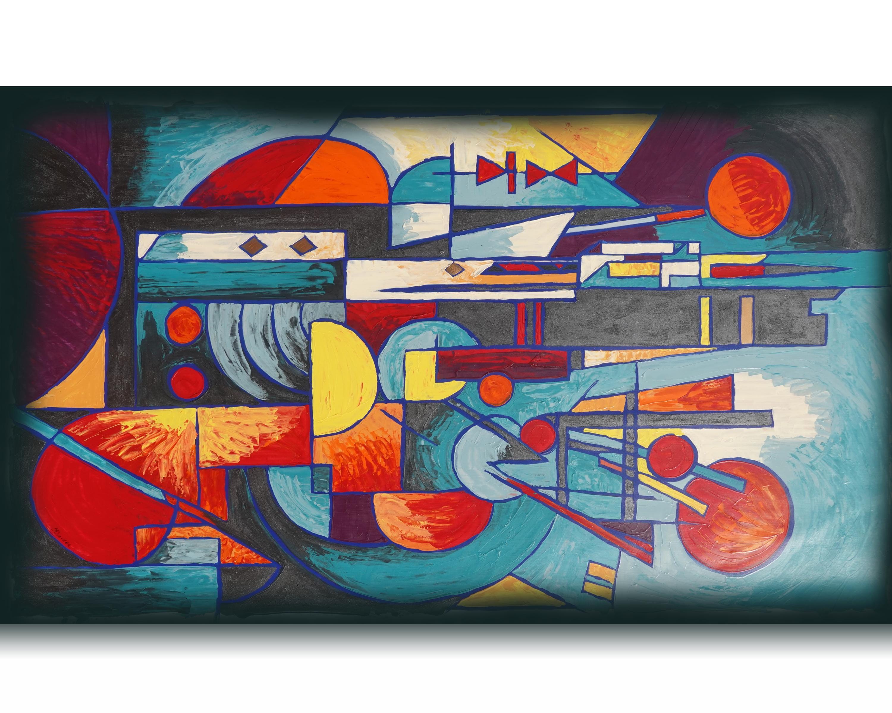 A bold abstract painting. Perfect for adding energy and color to your living room, office, or creative space.