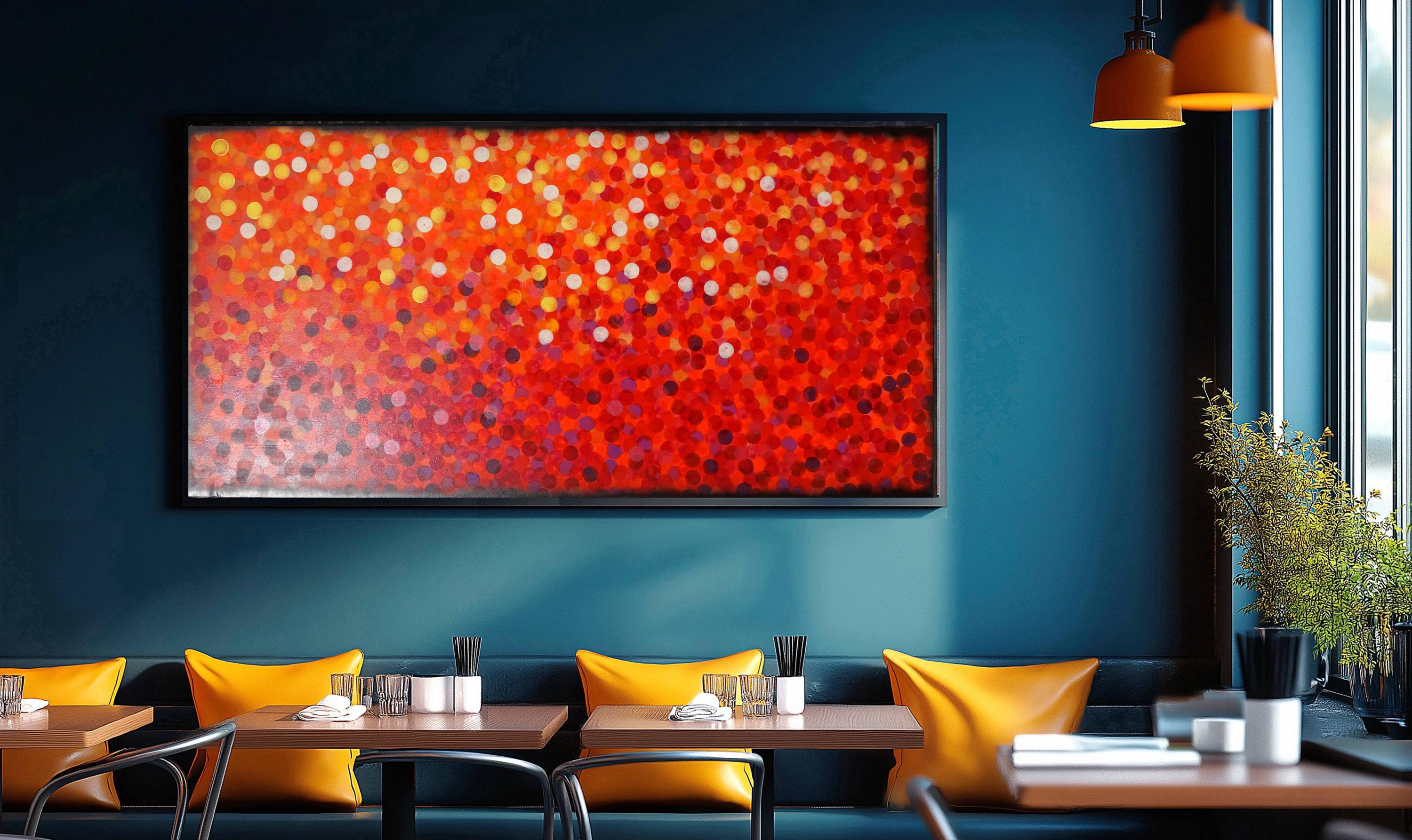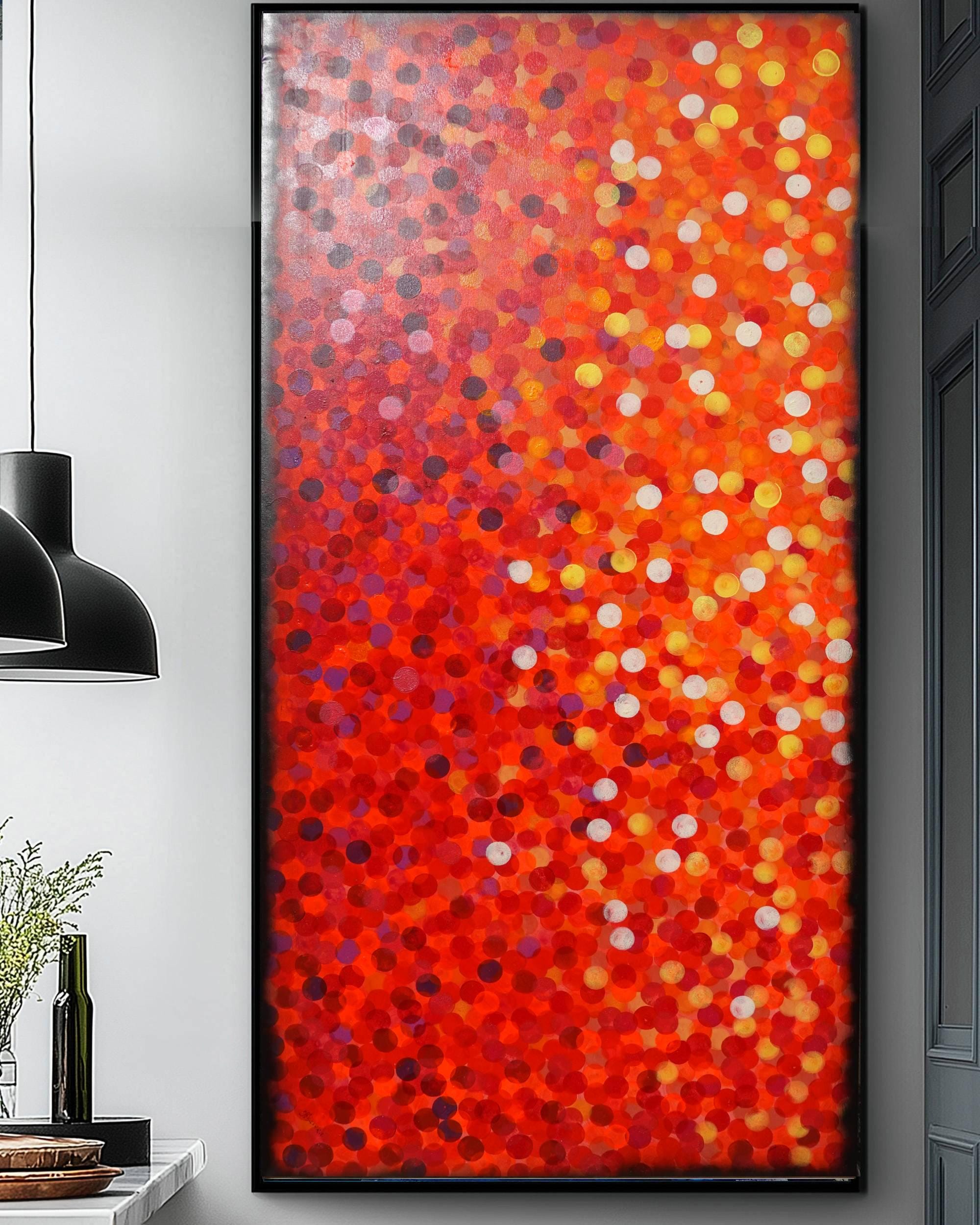 A bold abstract painting. Perfect for adding energy and color to your living room, office, or creative space.
