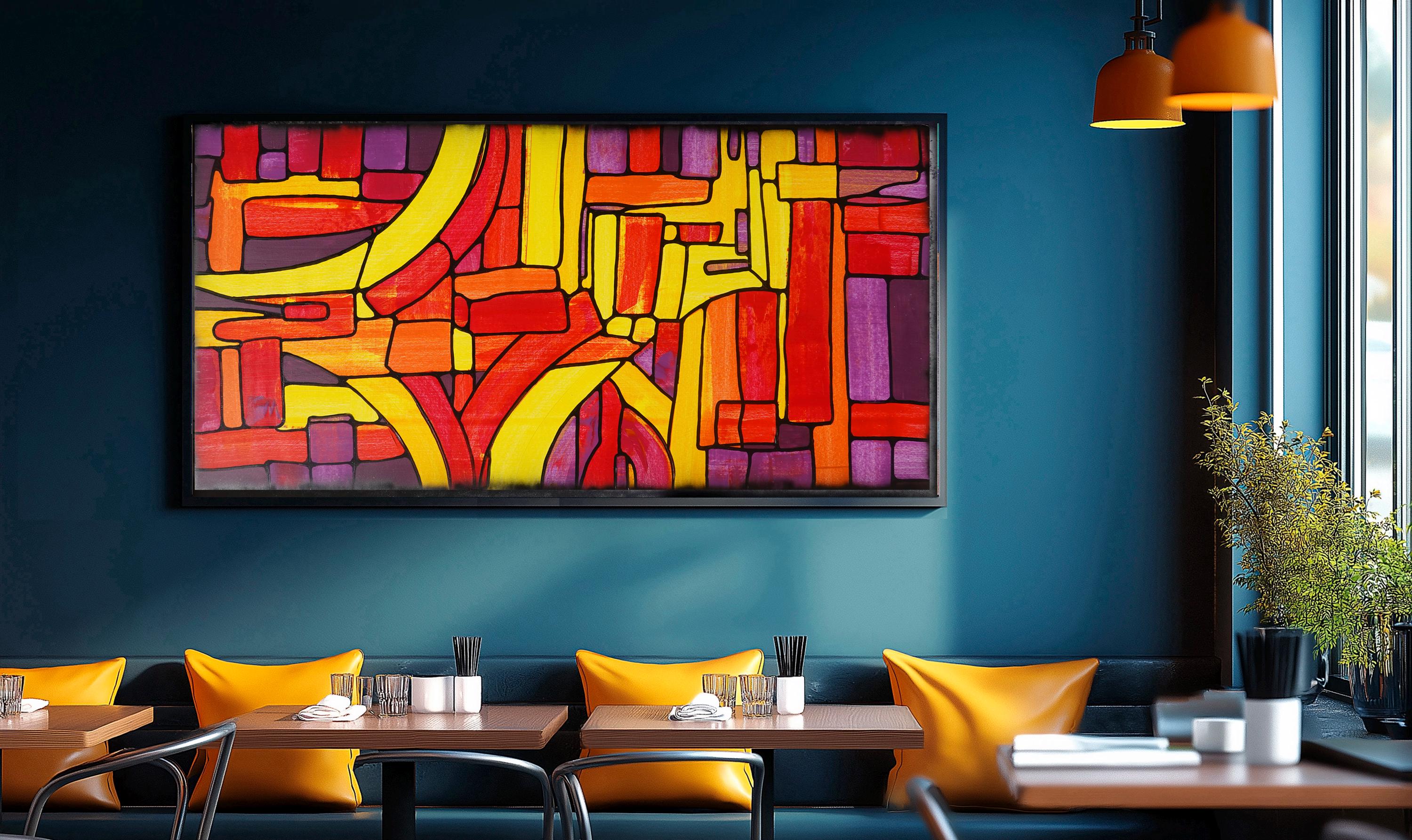 A bold abstract painting. Perfect for adding energy and color to your living room, office, or creative space.
