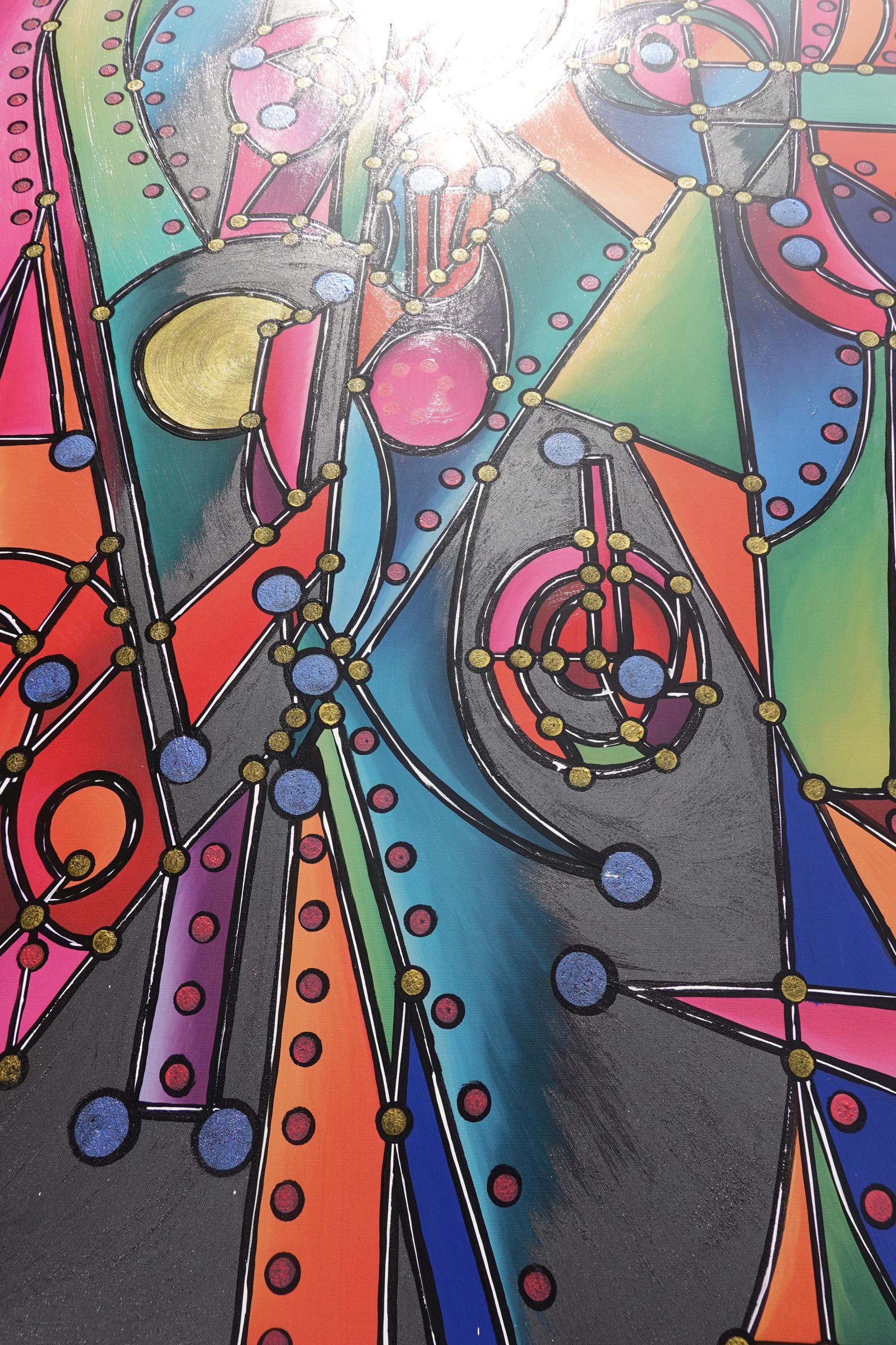 A bold abstract painting. Perfect for adding energy and color to your living room, office, or creative space.