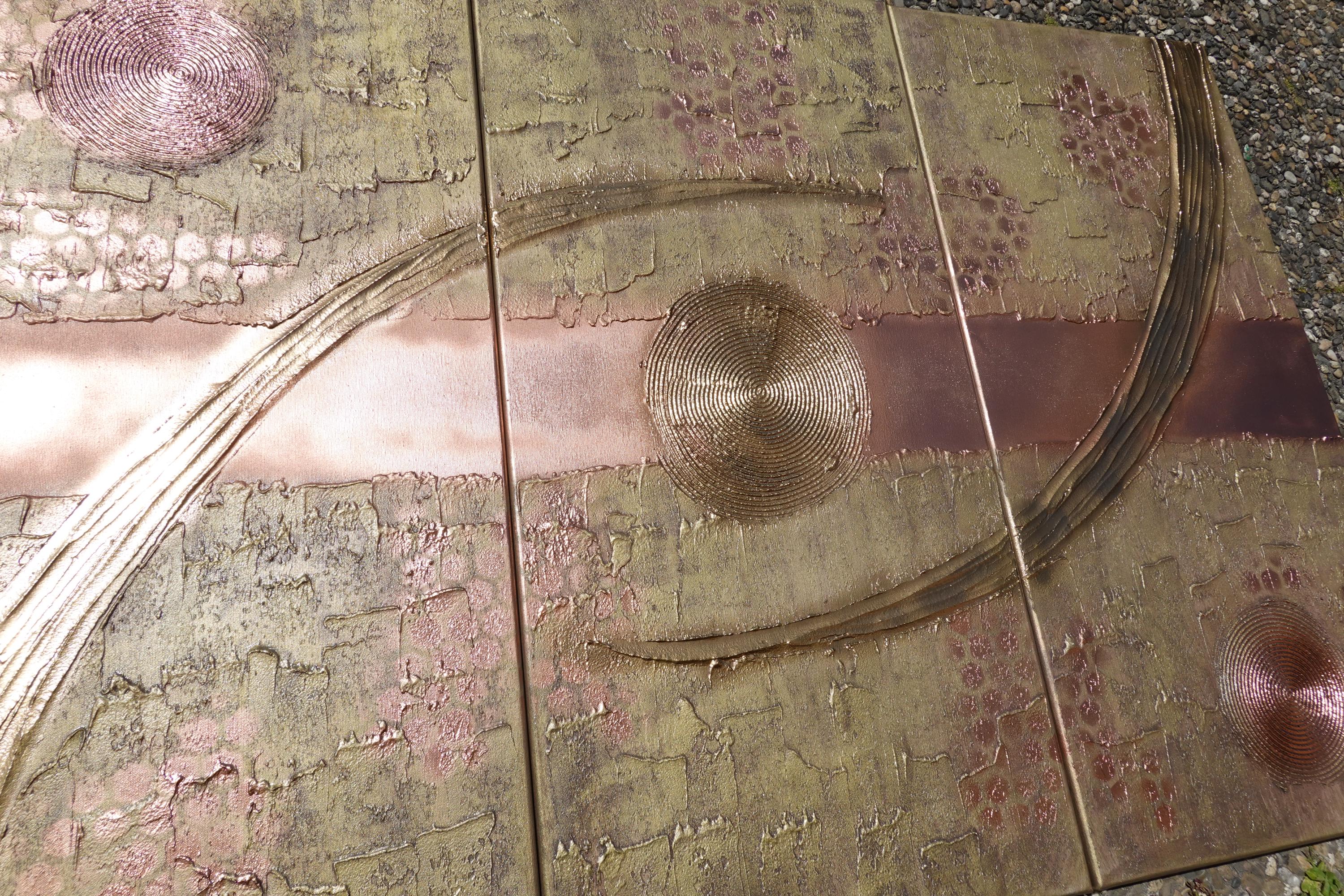 Depending on different lights while taking pictures from the painting, the multileyers metallic effects may create a very interesting and changing look of the artwork.