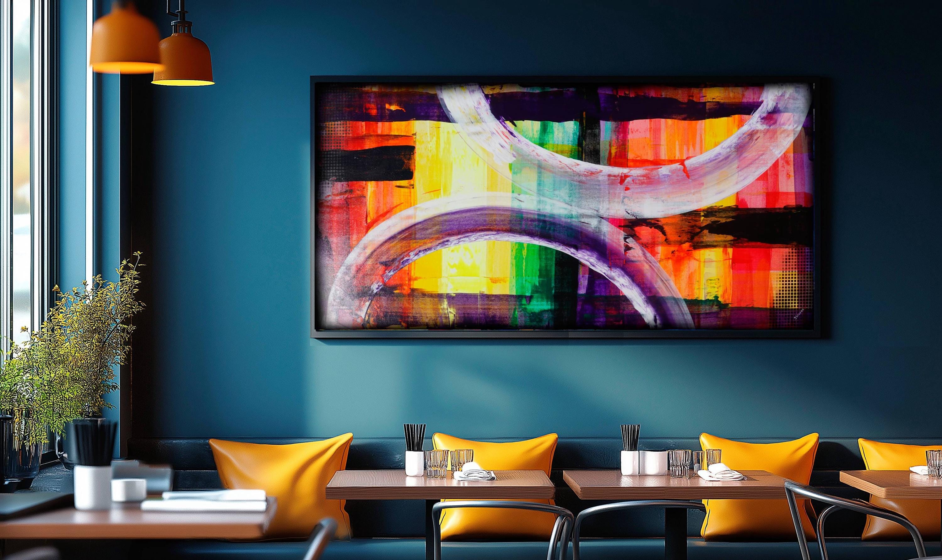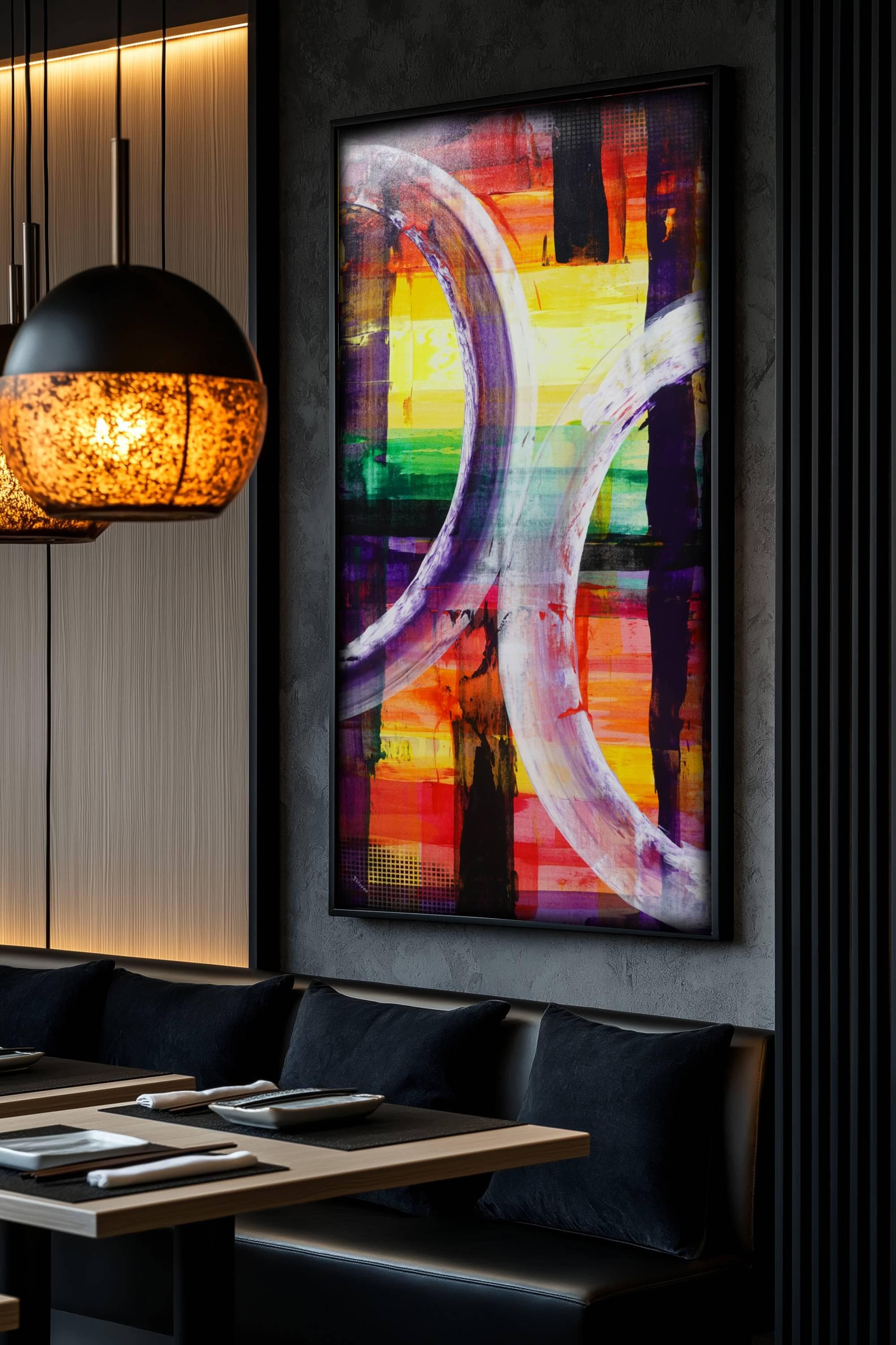 A bold abstract painting. Perfect for adding energy and color to your living room, office, or creative space.