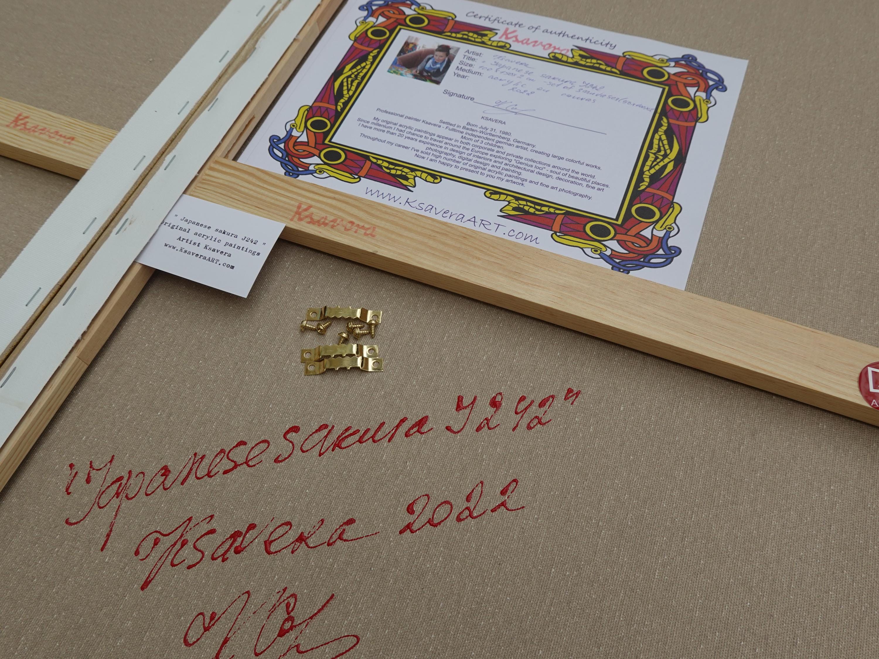 READY to HANG with a hook set. Accompanied with a certificate of authenticity. Painting is signed on the front and back. Stamped and signed with hand.